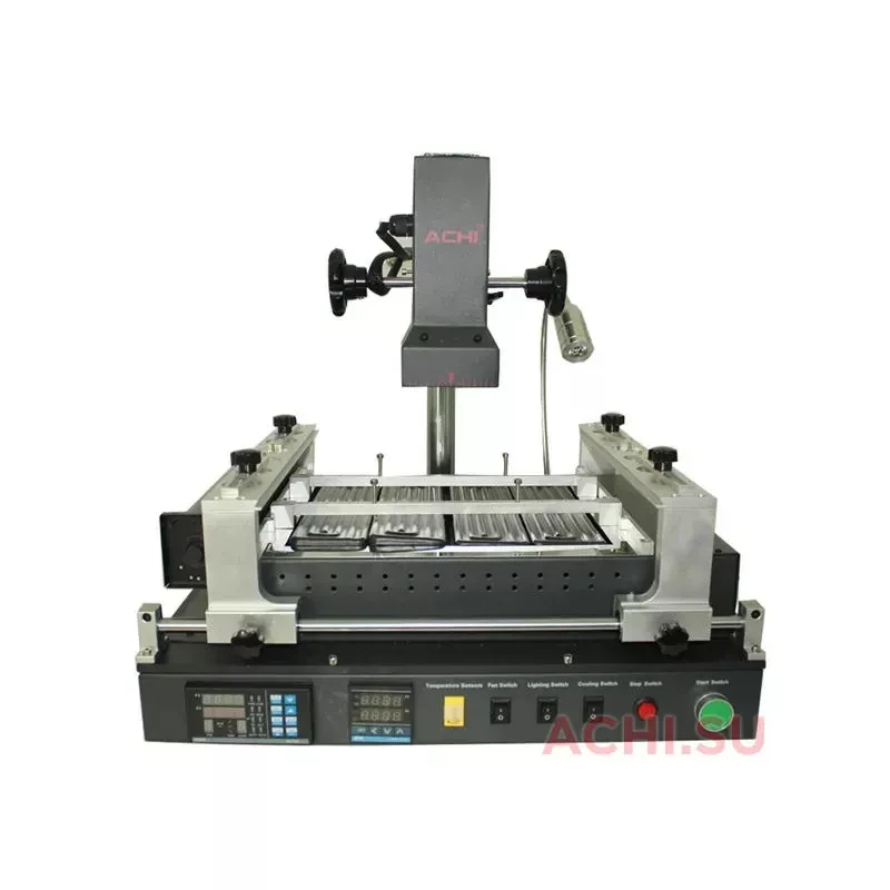 Знаменитый производитель поставляет на рынок несколько моделей данного оборудования. Основными отличительными особенностями прибора Achi IR PRO SC являются: имеющий две области нагрева, большой по площади, термический стол, опоры для плат, исключающие прогибание при нагревании, а также удобные держатели и направляющие для деталей. Помимо перечисленных достоинств стоит выделить: